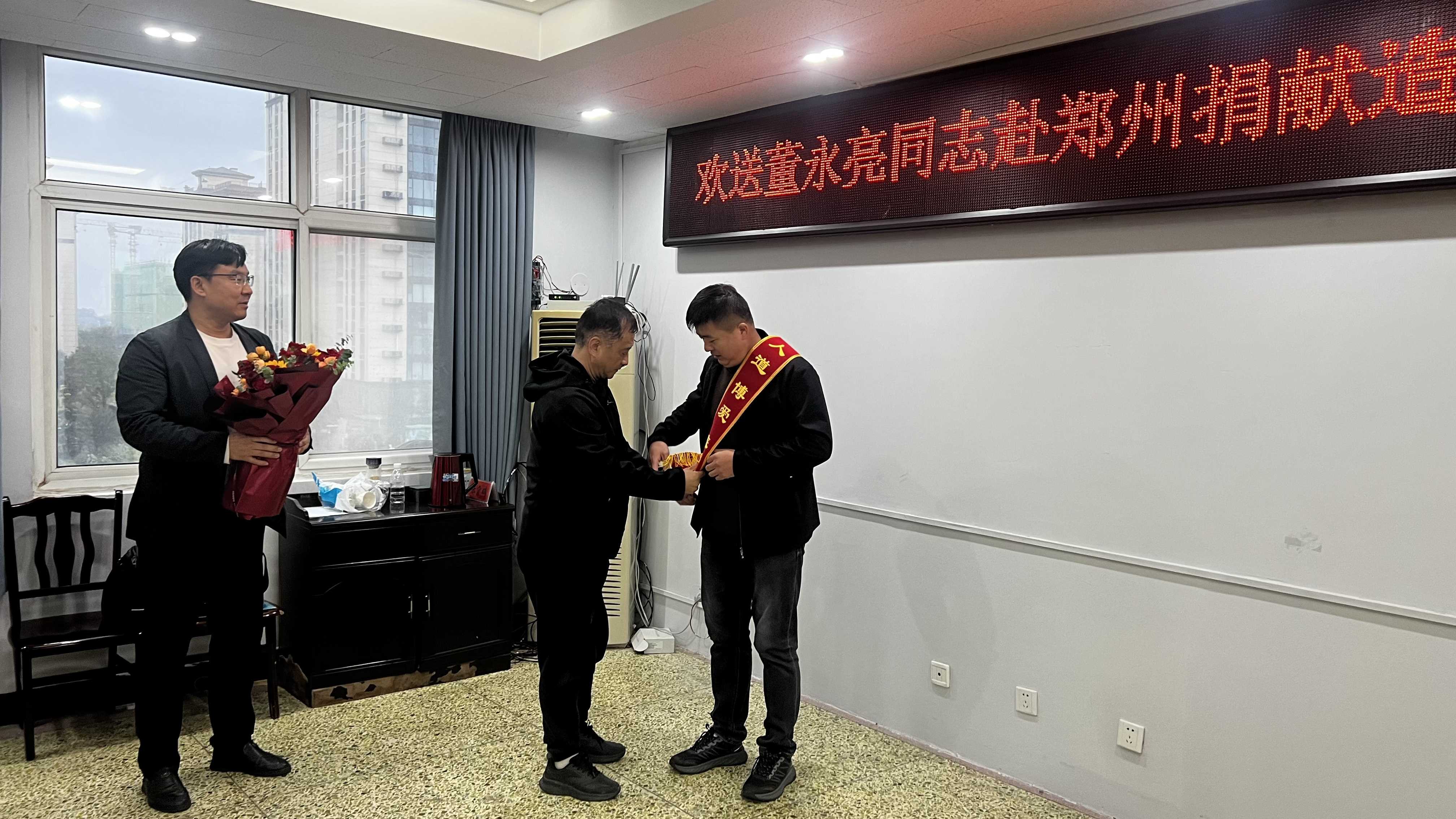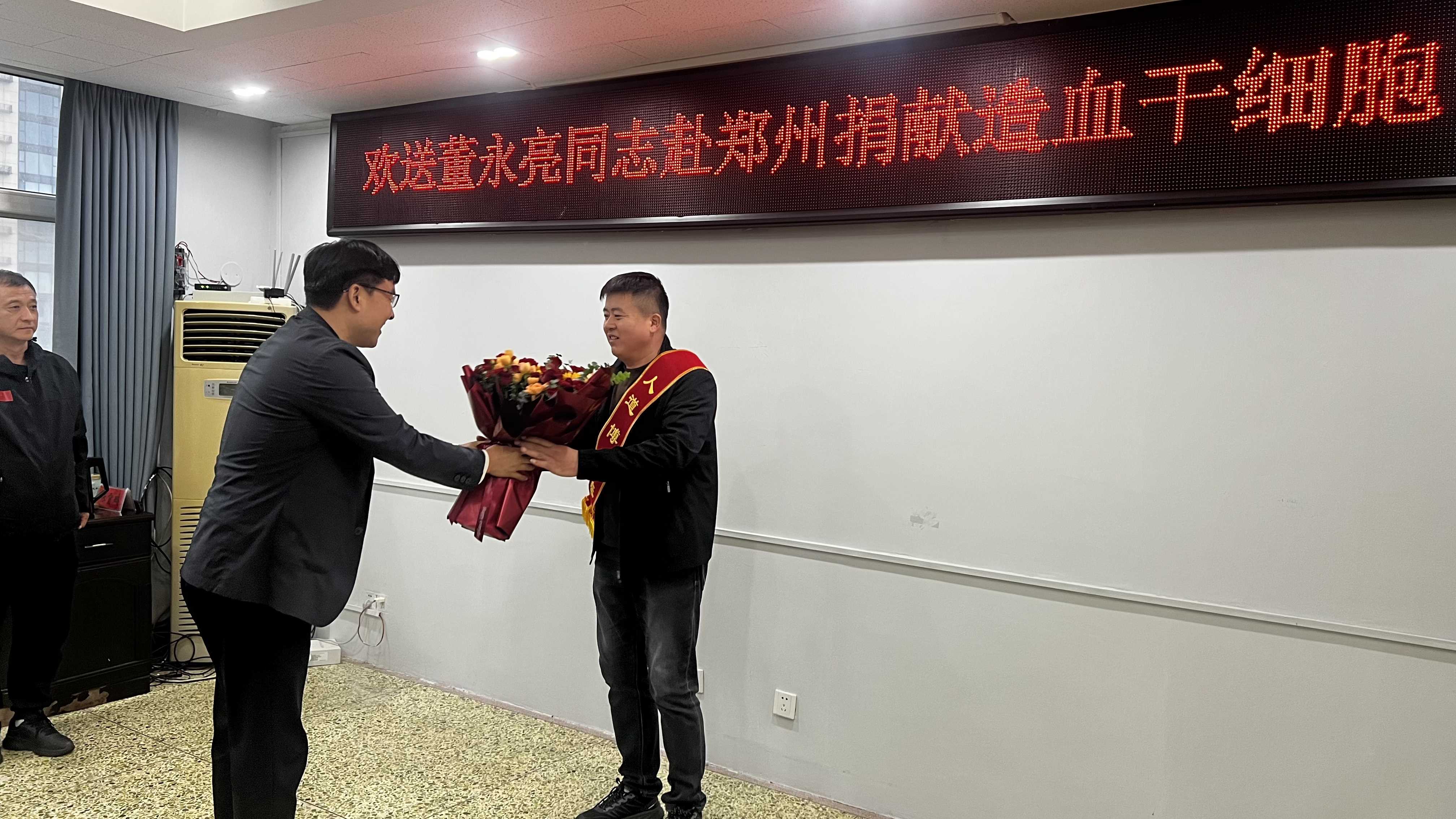10月17日上午,滑县卫健委、滑县红十字会共同为即将启程赴郑州捐献造血干细胞的志愿者——董永亮同志举行了庄重而温暖的欢送仪式。